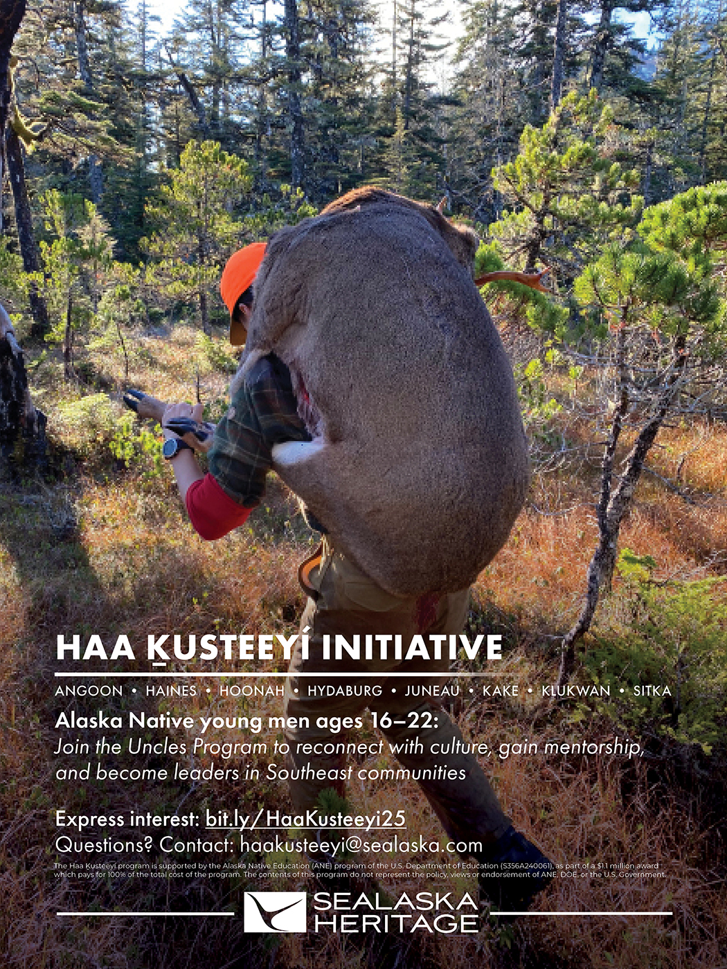 The initiative is based on the traditional practice of uncles teaching nephews how to live with respect for the land, uphold cultural responsibilities and serve their people. It centers traditional knowledge and offers students certificated trainings. Participants will earn certifications in Alaska boat safety, hunter education and food preservation and engage in mentorship and cultural programming focused on tribal leadership, mental wellness and environmental science.
