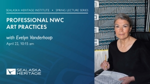 Evelyn Vanderhoop, a Northwest Coast textile weaver from the Haida Nation, will present her talk, “Professional NWC Art Practices.”